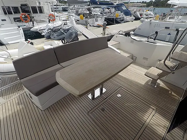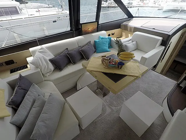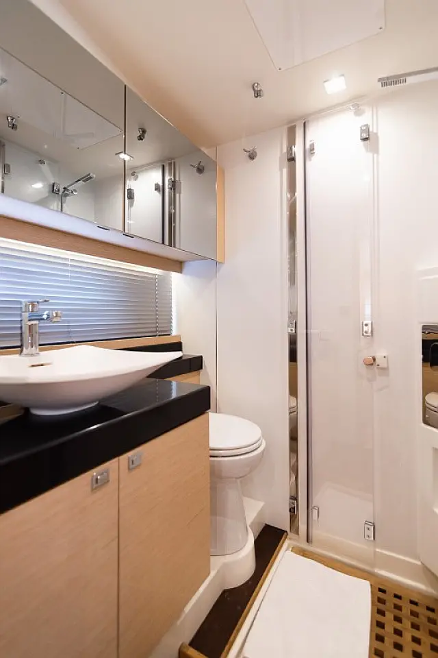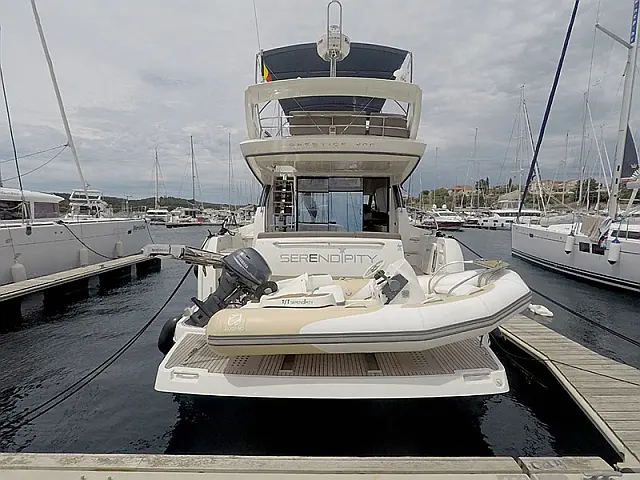 Salpa ancora elettrico , Bimini top , Teloni tavolo , Cocpit cuscini , Doccia sul ponte , Scaletta , Motore fuoribordo , Hydraulic passarella , Flybridge