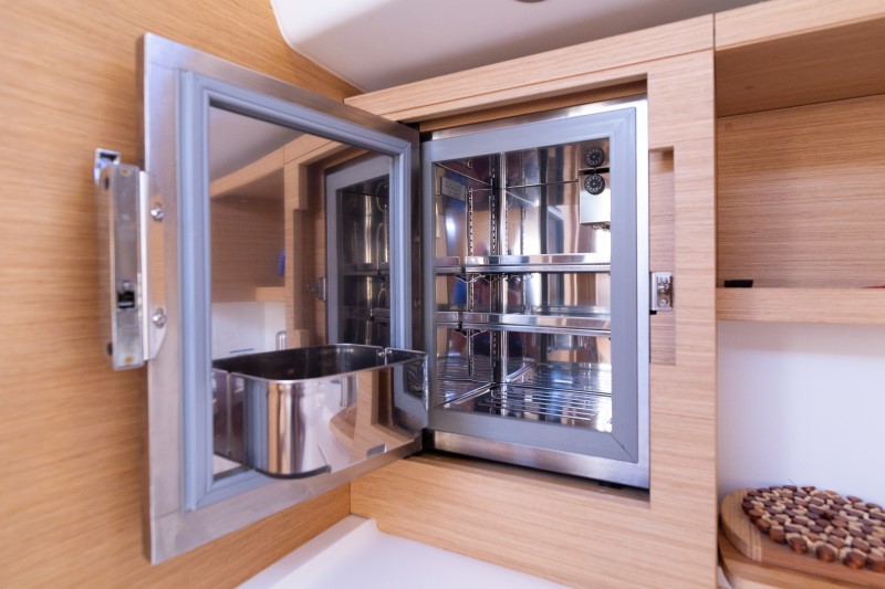 Autopilota , Busolla , Tachimetro , Profondimetro , Carte nautiche , Stazione VHF , Anemometro , GPS plotter in pozzeto , Propulsore di prua